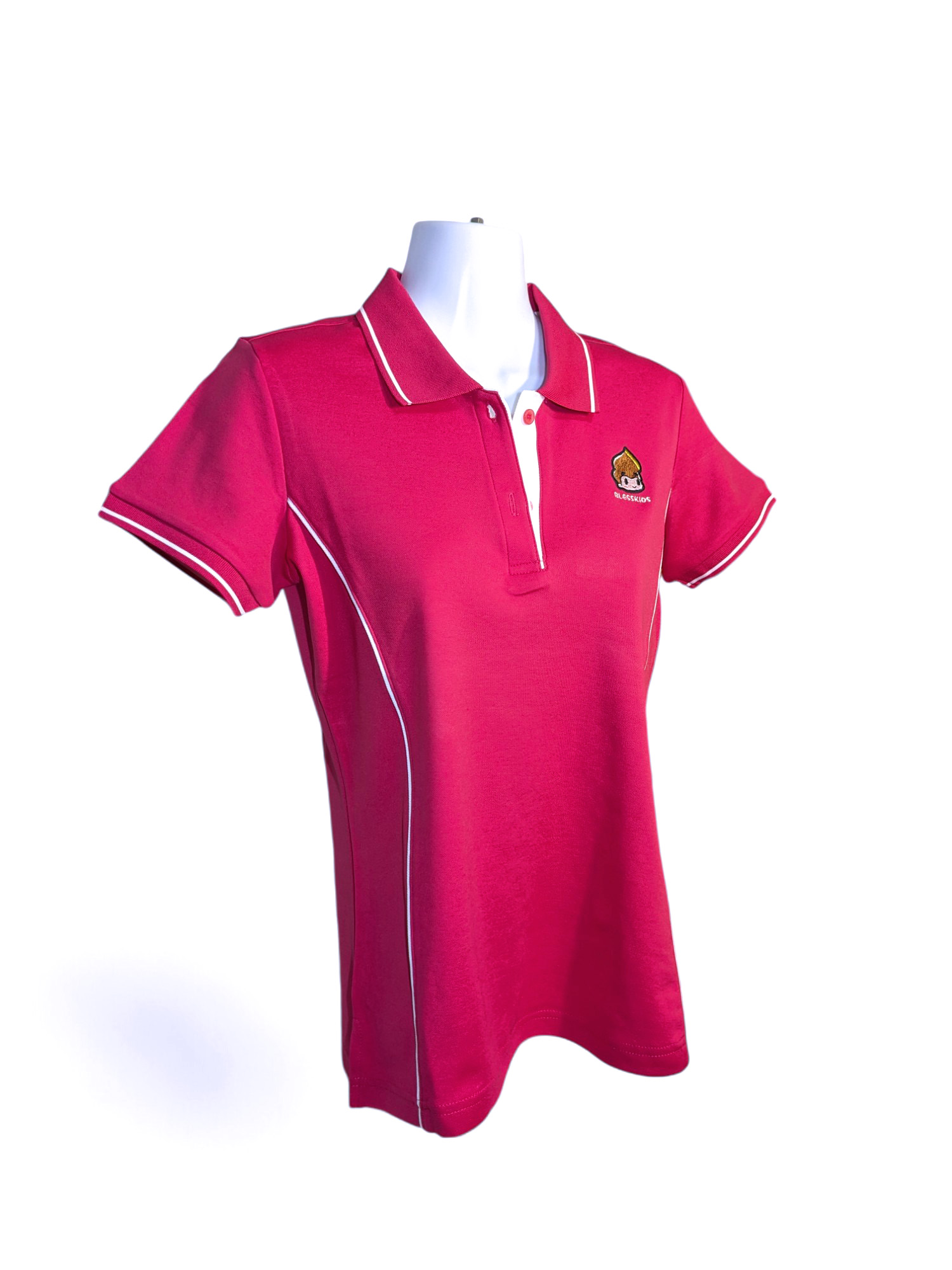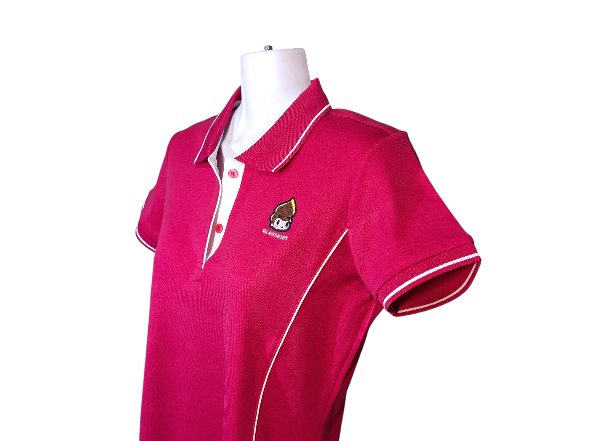 白象聞蓮-POLO衫-女-胭脂紅色