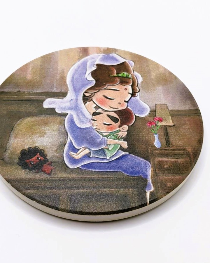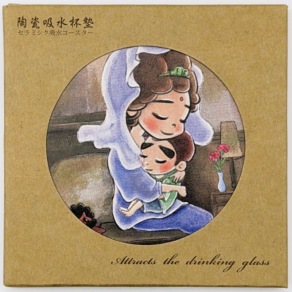 小八將陶瓷吸水杯墊-觀音媽媽擁抱款
