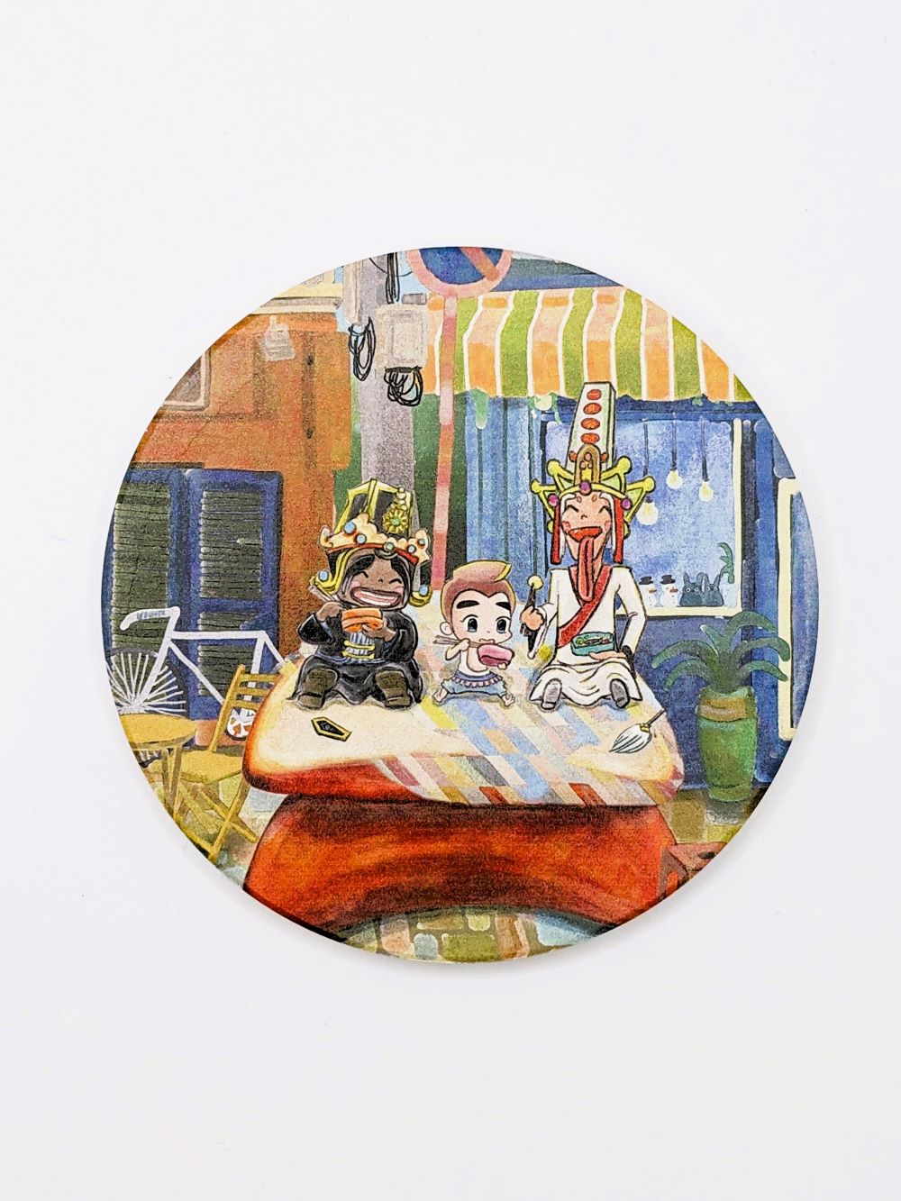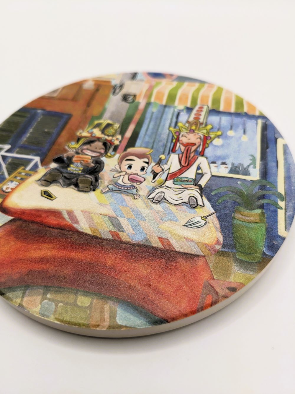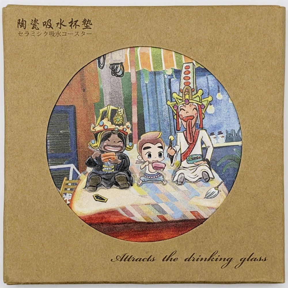 小八將陶瓷吸水杯墊-跟黑白無常筊杯上談笑吃便當
