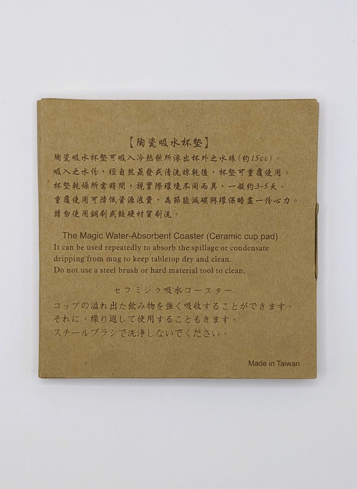 吸入之水份,徑自然蒸發或清洗晾乾後,杯墊可重覆使用。