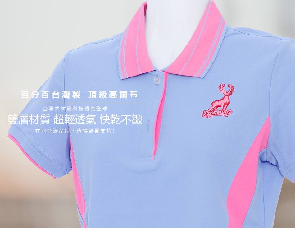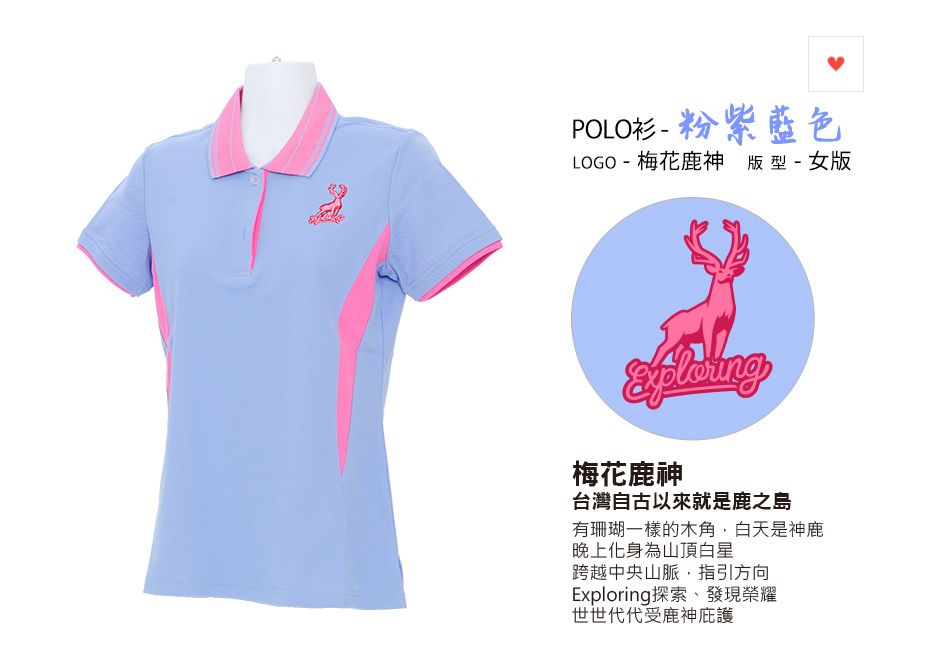 梅花鹿神-POLO衫-女-粉紫藍色