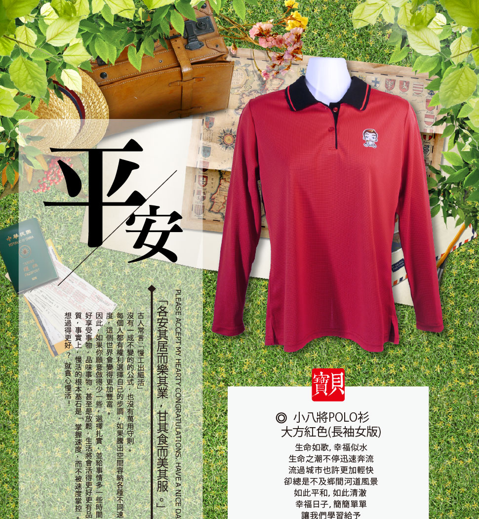 小八將-竹碳纖維長袖POLO衫-女版-紅色_M