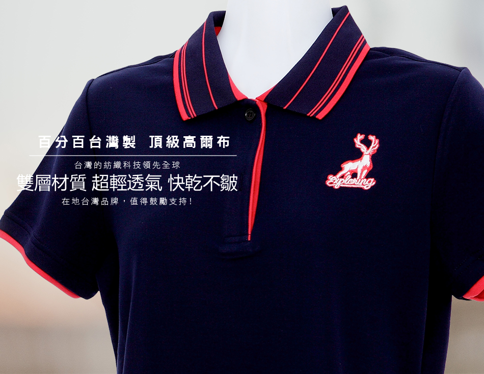 梅花鹿神-優雅俐落風-POLO衫-女-藏青色