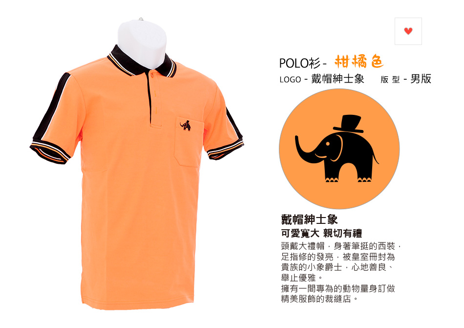 戴帽紳士象-POLO衫-男-柑橘色