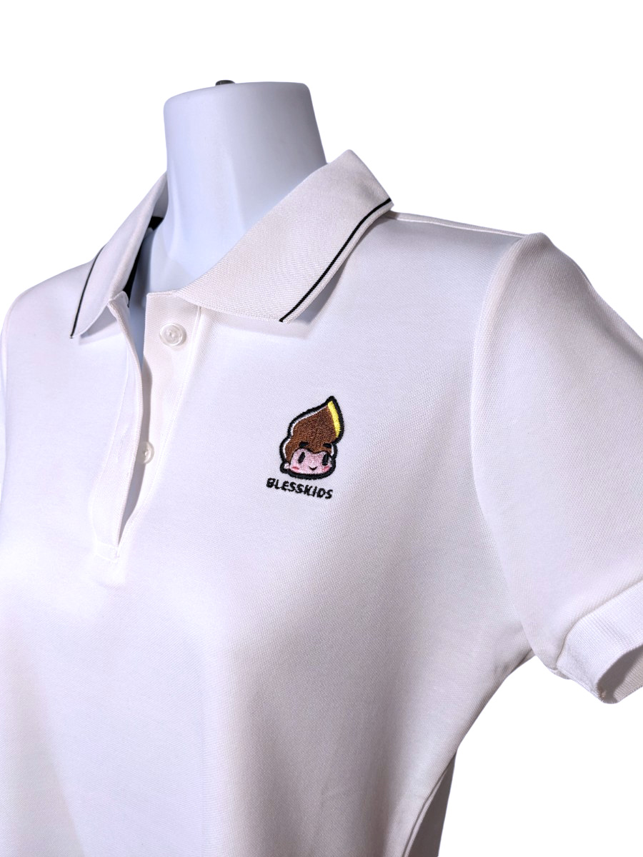 小八將logo-質感臂繡款-POLO衫-女-白色