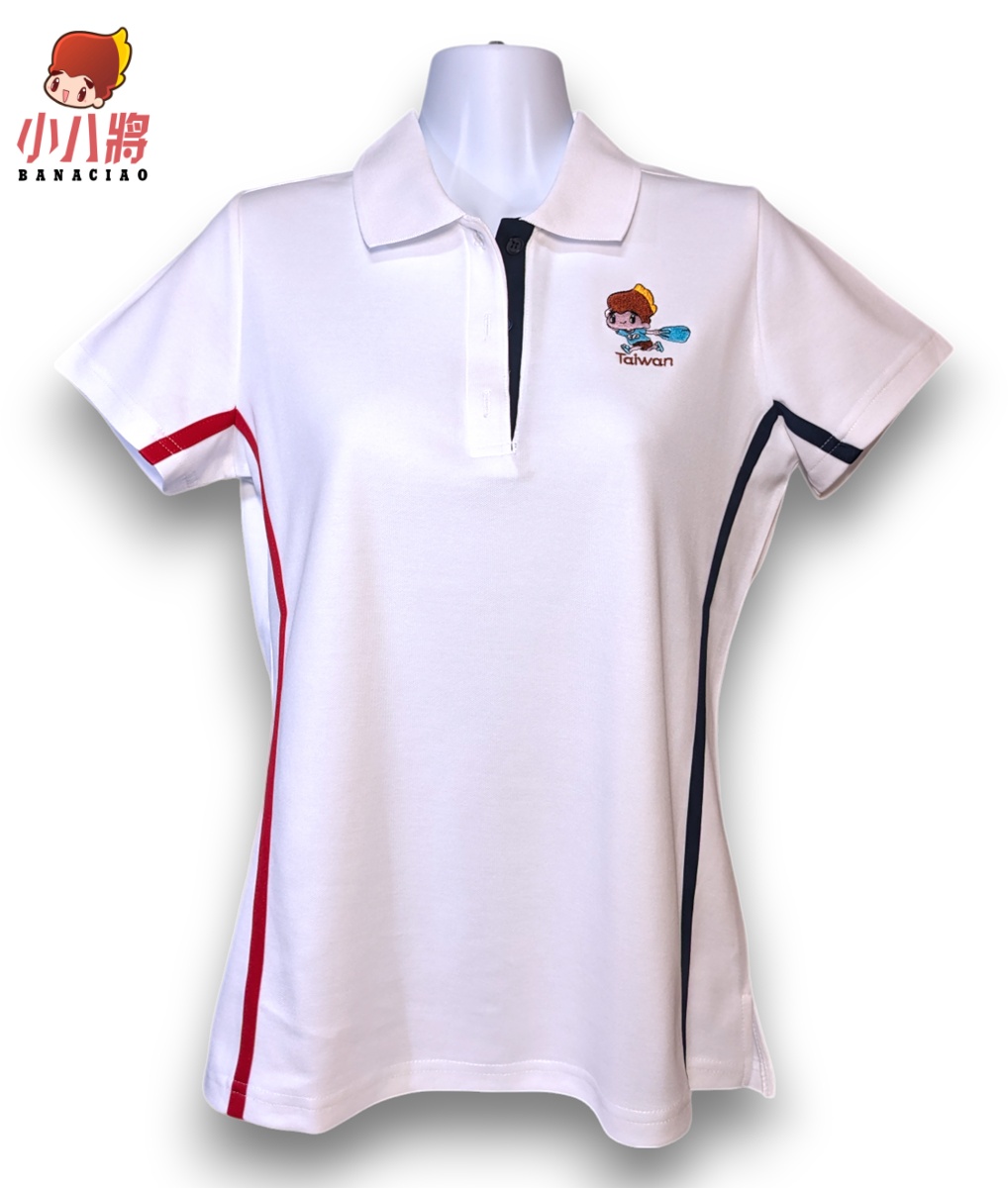 小八將logo-質感臂繡款-POLO衫-女-白色